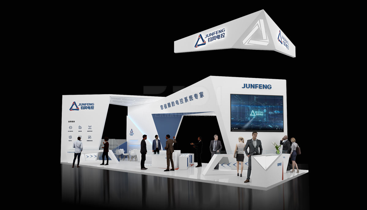 本次“均風電控”展臺占地面積為90平方米,色調主要以白色為主,主體結構為:木結構+表面乳膠漆 其他材質包括:發光字 雪弗板字 烤漆 地臺表面淺色地板等。